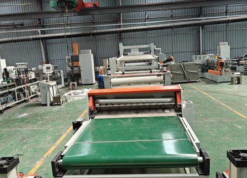 POE隔音片材生產(chǎn)線的生產(chǎn)流程為:原料配料混合→熔融擠出→壓延成型→冷卻→切割修邊→收卷或裁切。